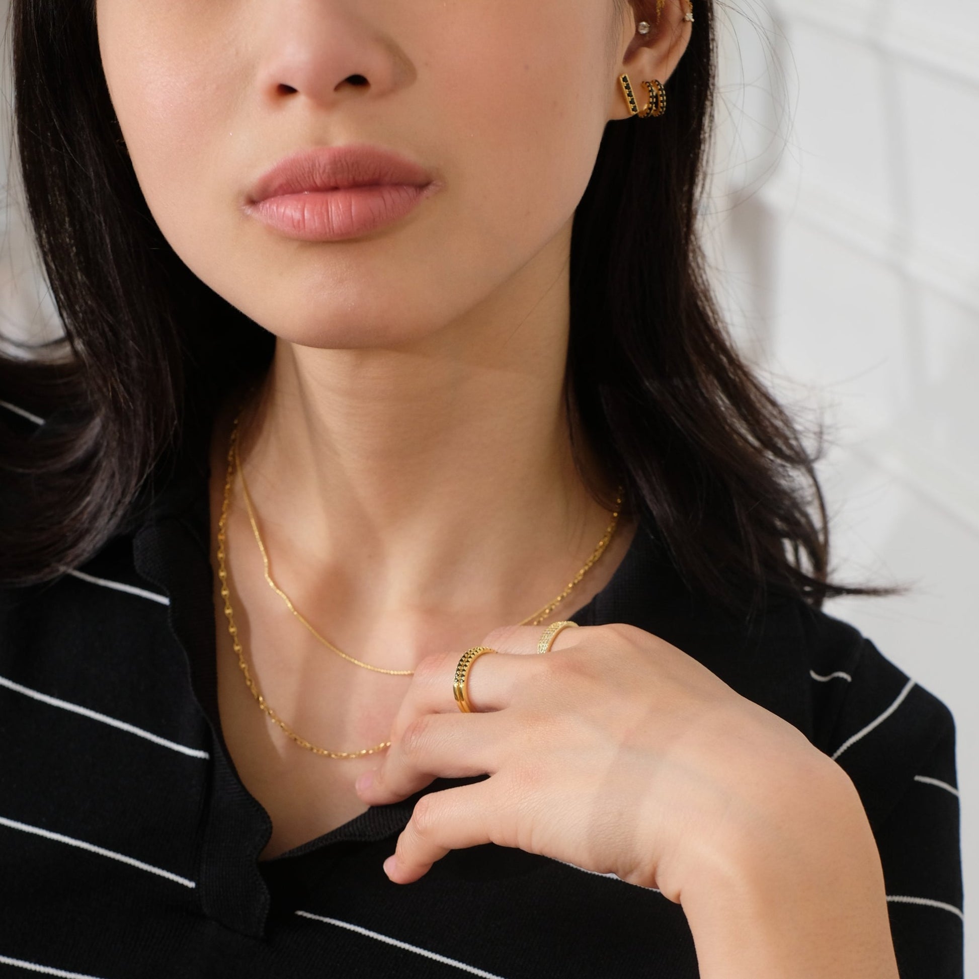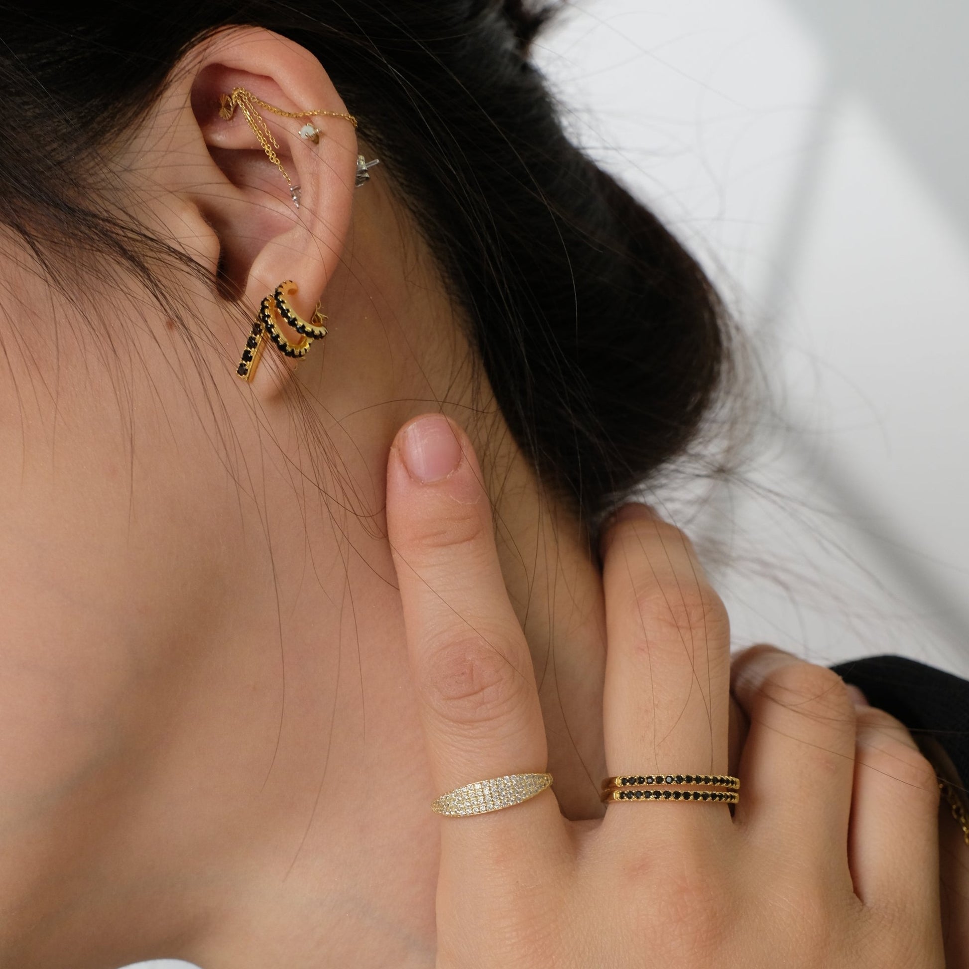 Hanya dengan satu tindikan, anting lingkaran emas yang canggih dan ramping ini akan memberi Anda efek tumpukan ganda yang sempurna. Dihiasi dengan batu zirkonia kubik hitam, anting melingkar ganda ini, dibuat dengan cermat dan dicelupkan ke dalam emas 18k, adalah hal penting untuk rutinitas kantor dan pertunjukan musik rock. ⢠Ringan dan nyaman dipakai sepanjang hari ⢠Mudah dipadukan dengan perhiasan emas lainnya ā¢
