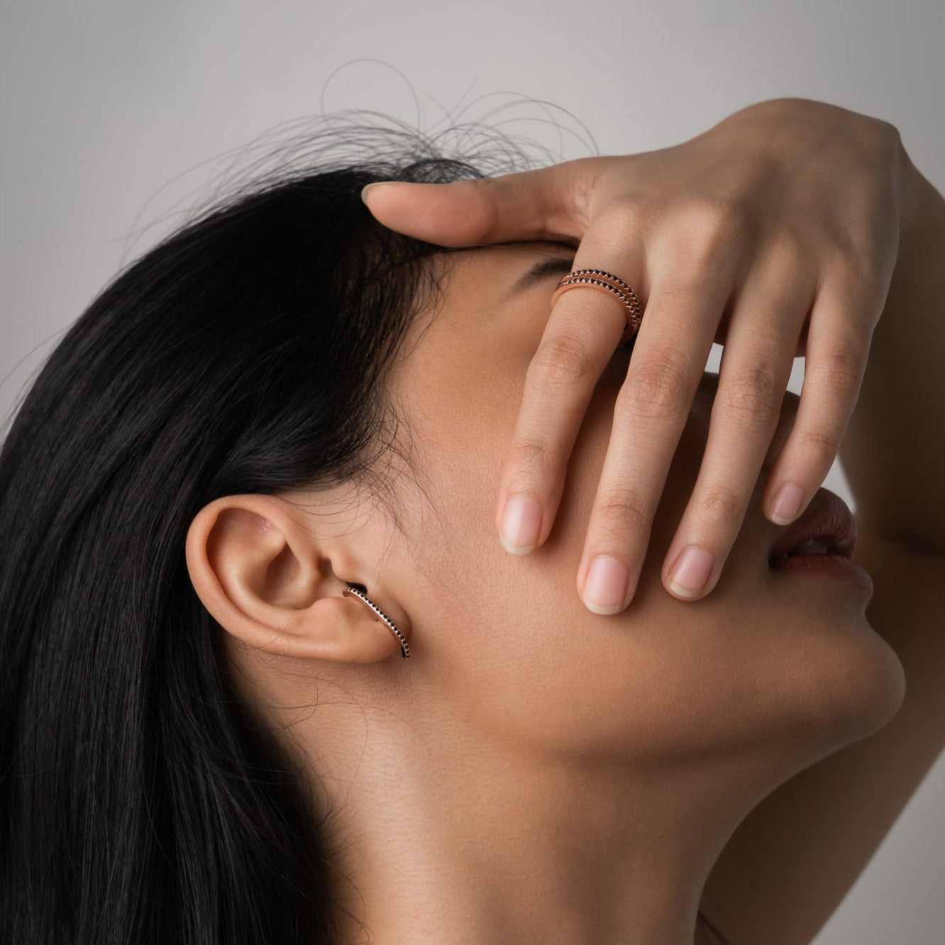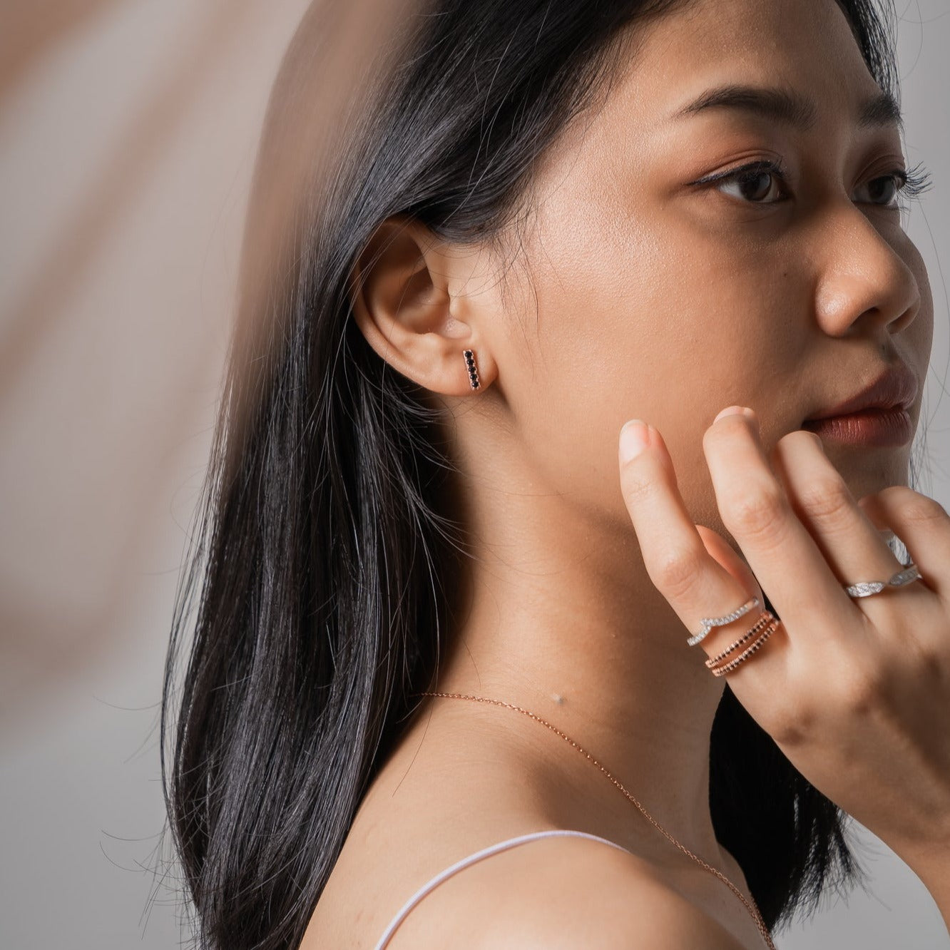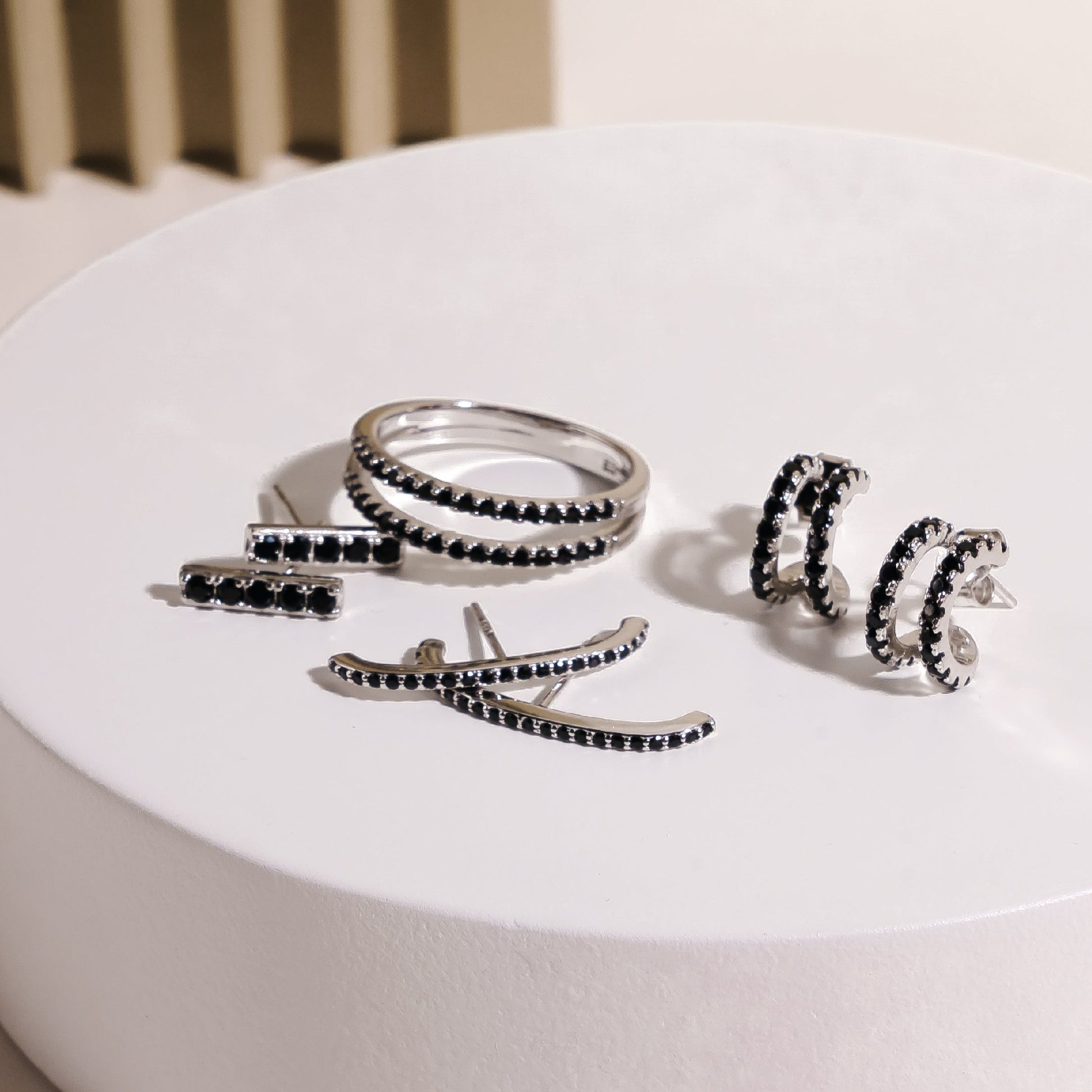 Komponen: Zirkonia Kubik Hitam, Emas 18K pada Perak Sterling 925
