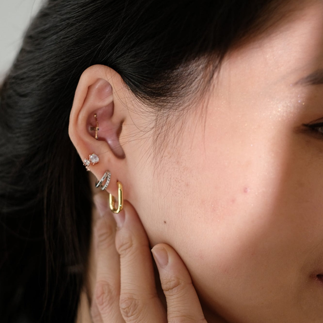 I bought these earrings to wear with the basic mini huggies and they look beautiful. Very sparkly and just what I wanted.