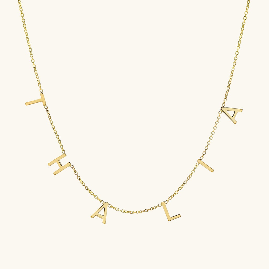 This classic and timeless name necklace crafted in stainless steel and dipped in 18K gold features a chain of your choice. Effortlessly chic and dainty, this name necklace makes the perfect gift for yourself or your loved ones. Wear this necklace alone or layered with your favorite chain necklace.