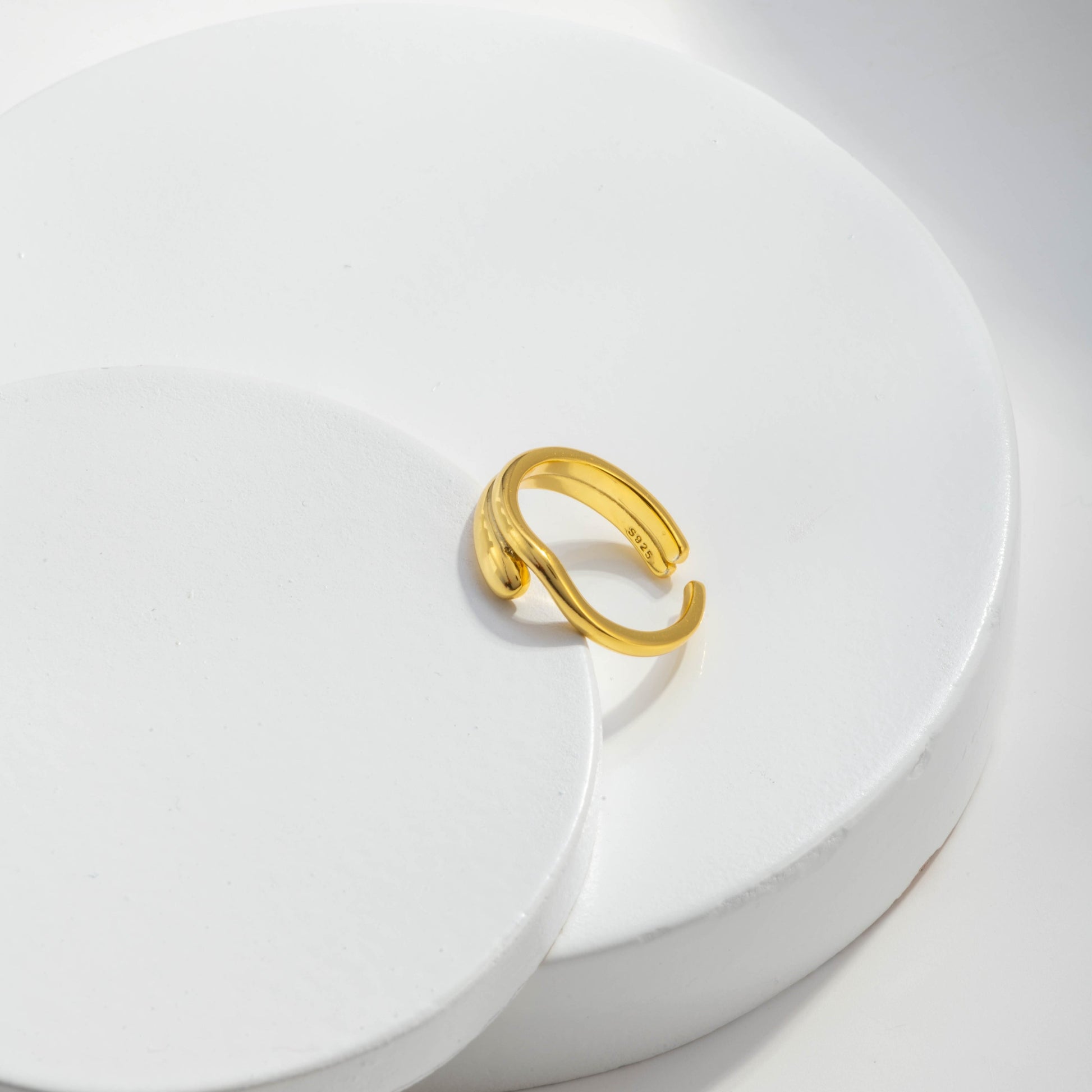 Be bold with this gold-coated ring that gently hugs your finger. This uniquely-designed ring makes a statement, but it’s one that you’ll want to make every day. Dipped in 18K gold, this ring will complete any look, and be the perfect addition to your jewelry wardrobe.