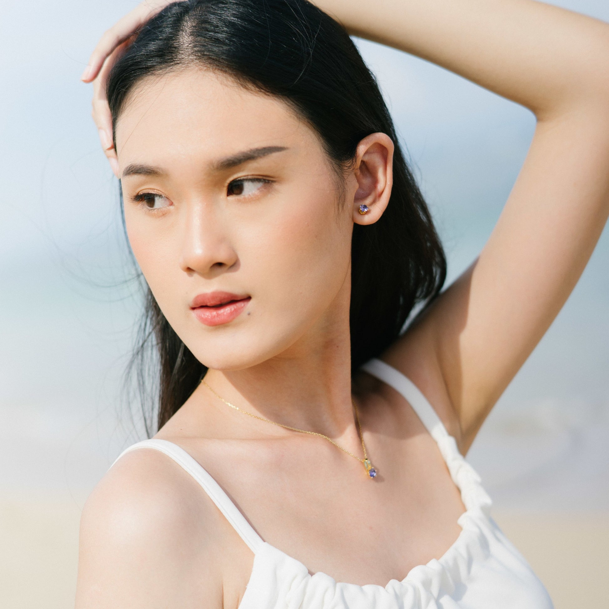 - Dainty studs finished in 18k gold