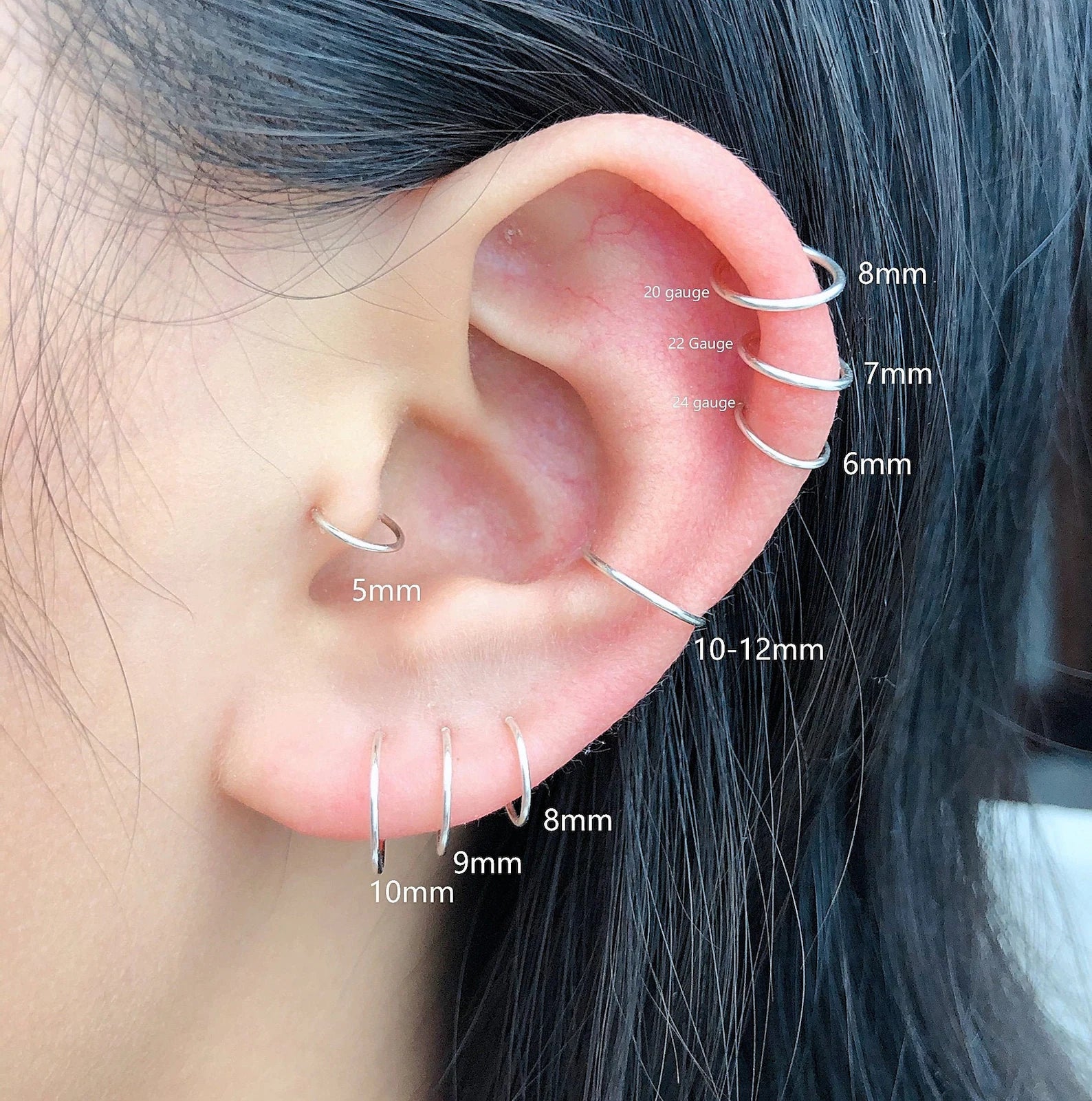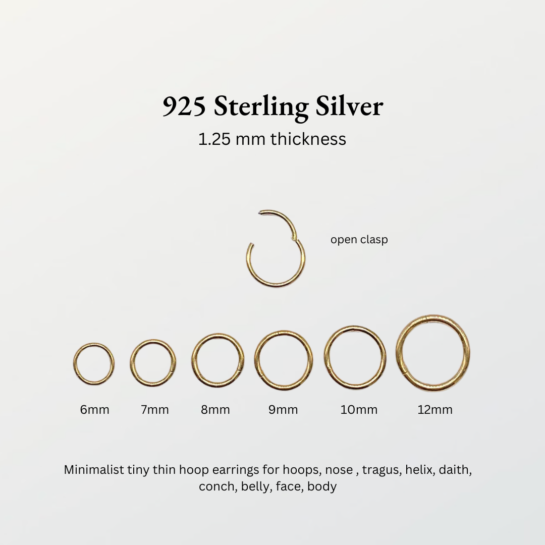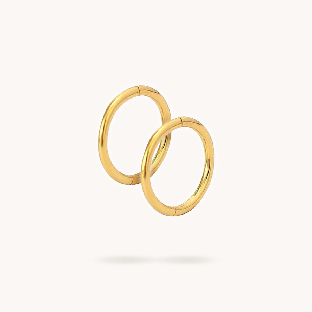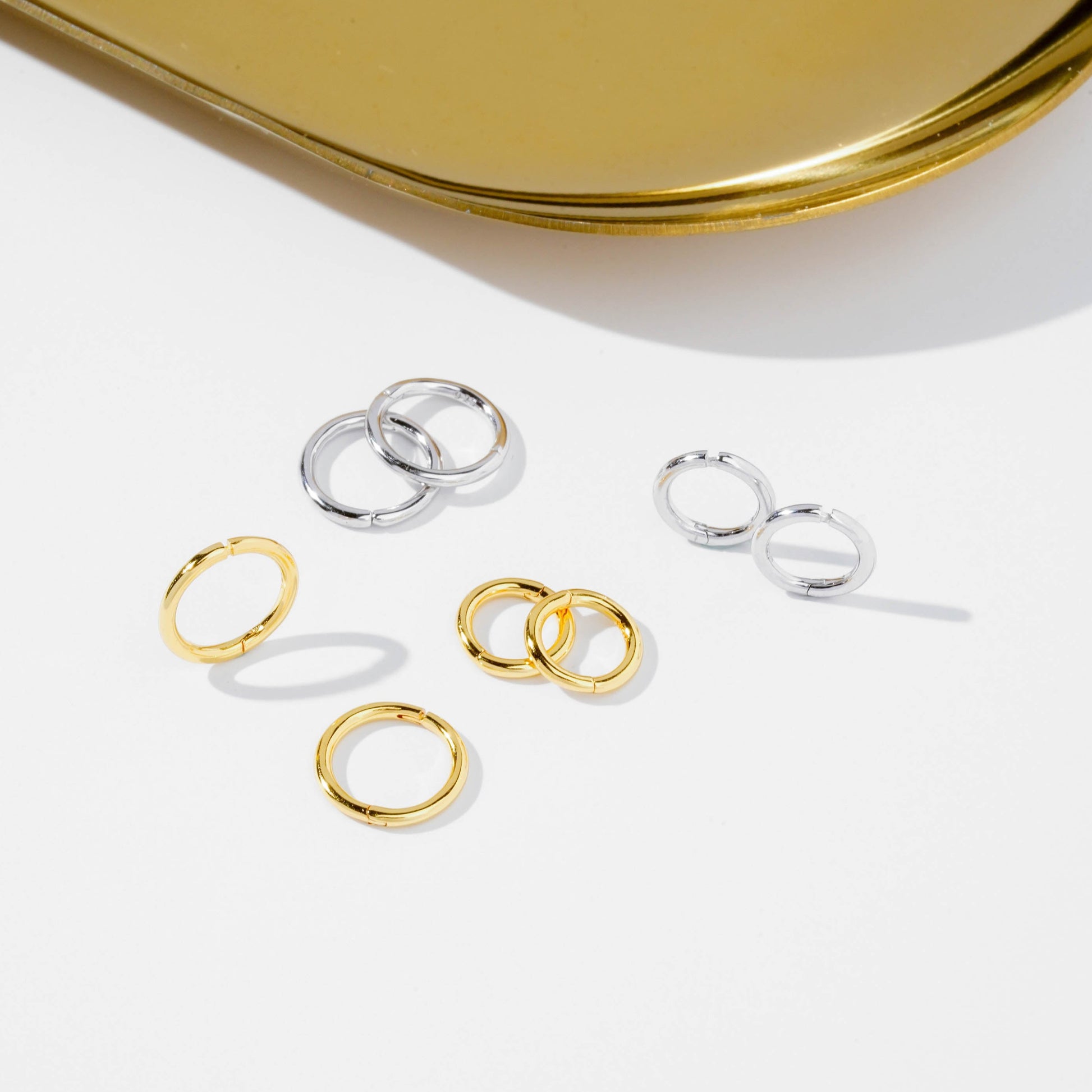 Adorn your piercing with these 925 Sterling Silver Piercing Hoops in 18K Gold. Supported with a hinged segmented seamless clicker, wear these piercing hoops with ease!