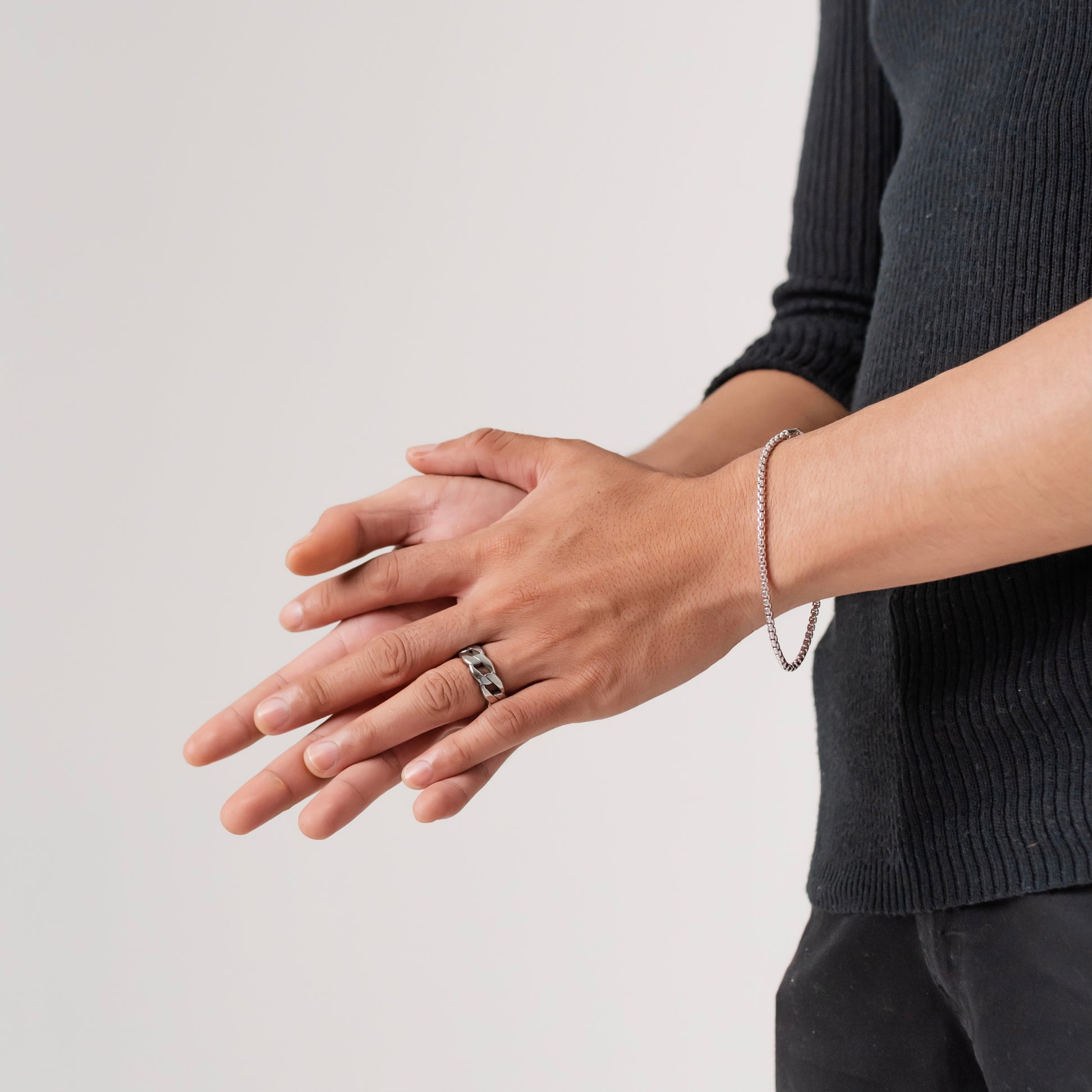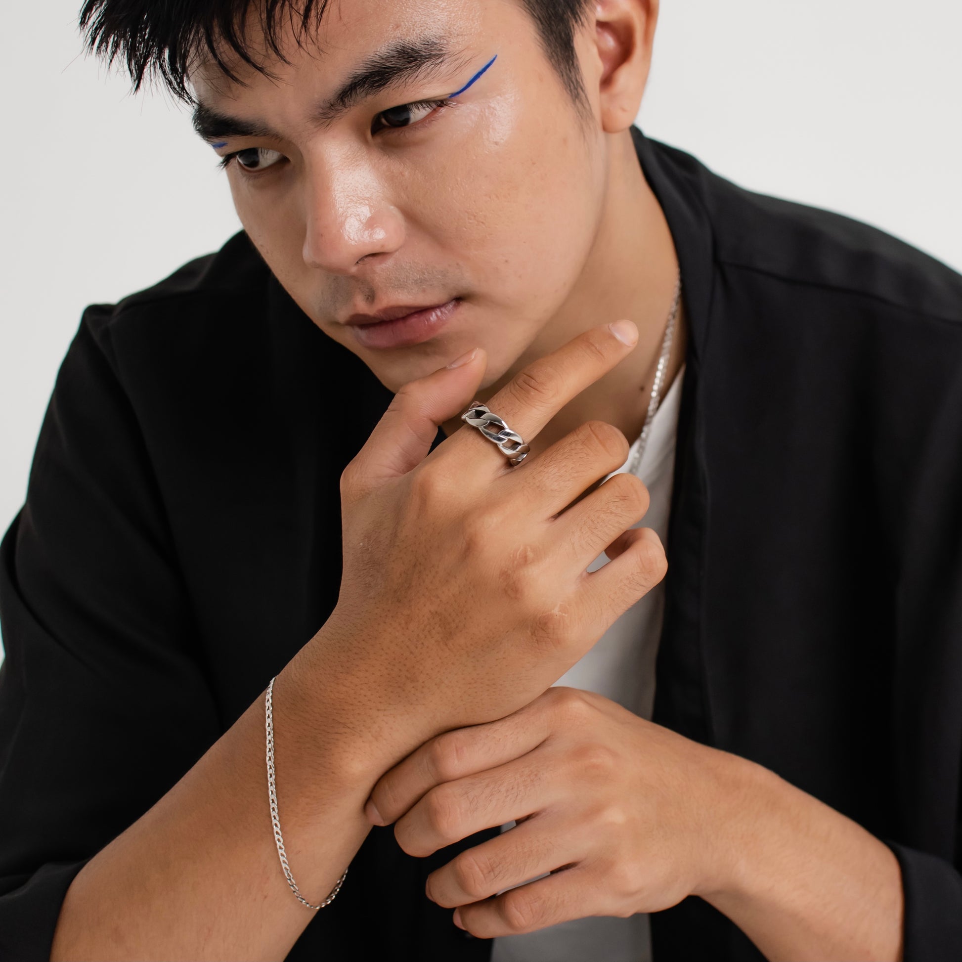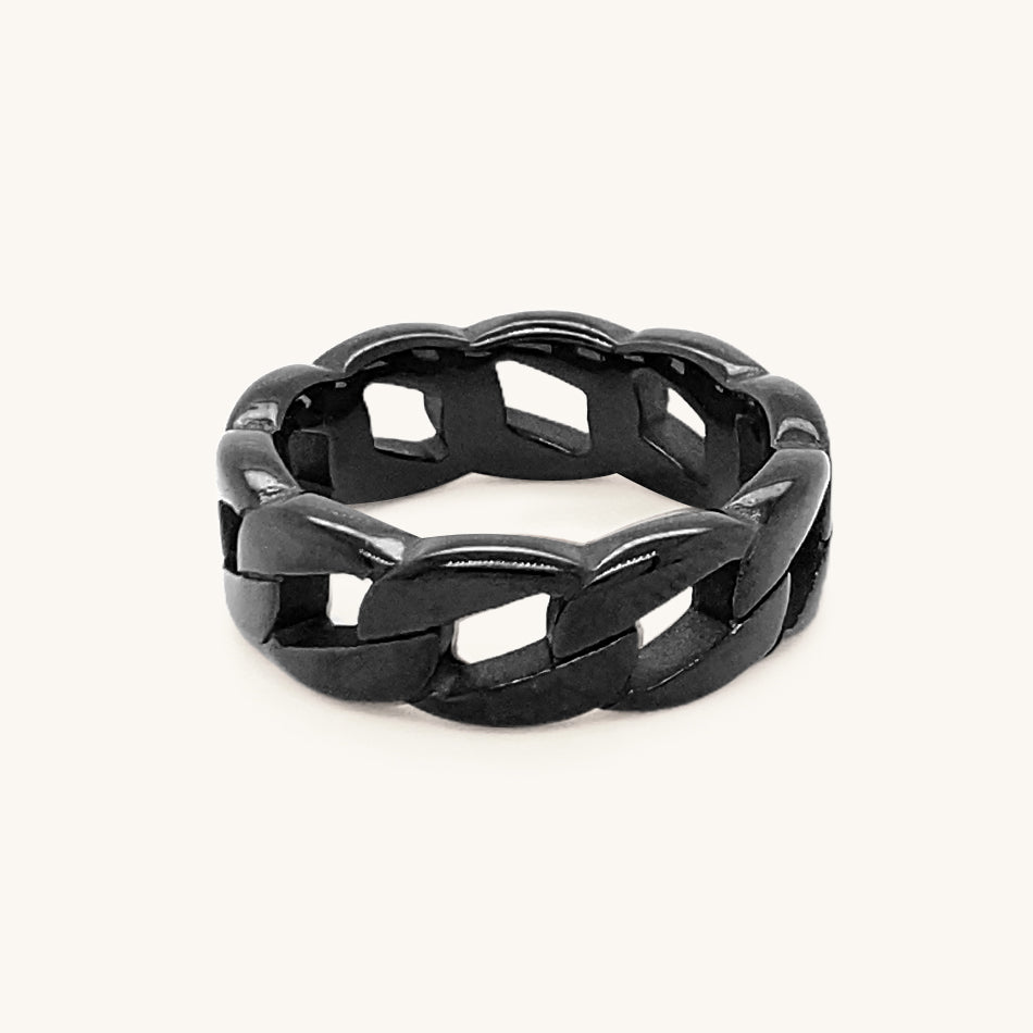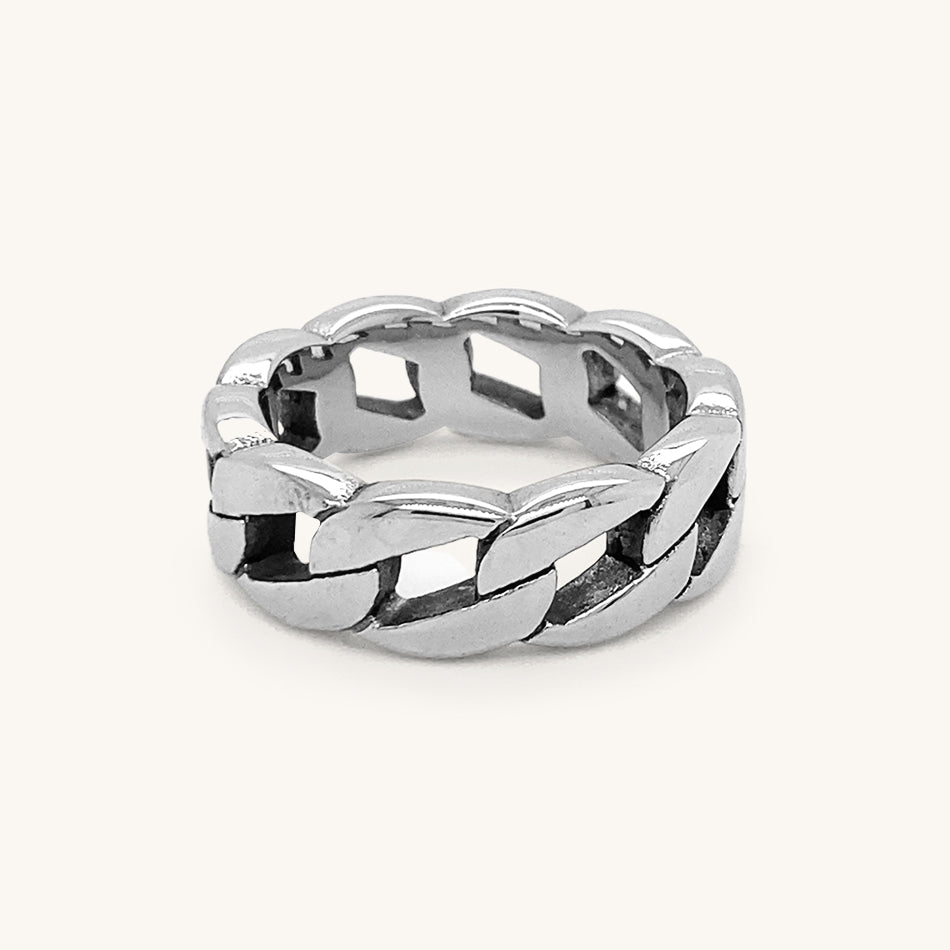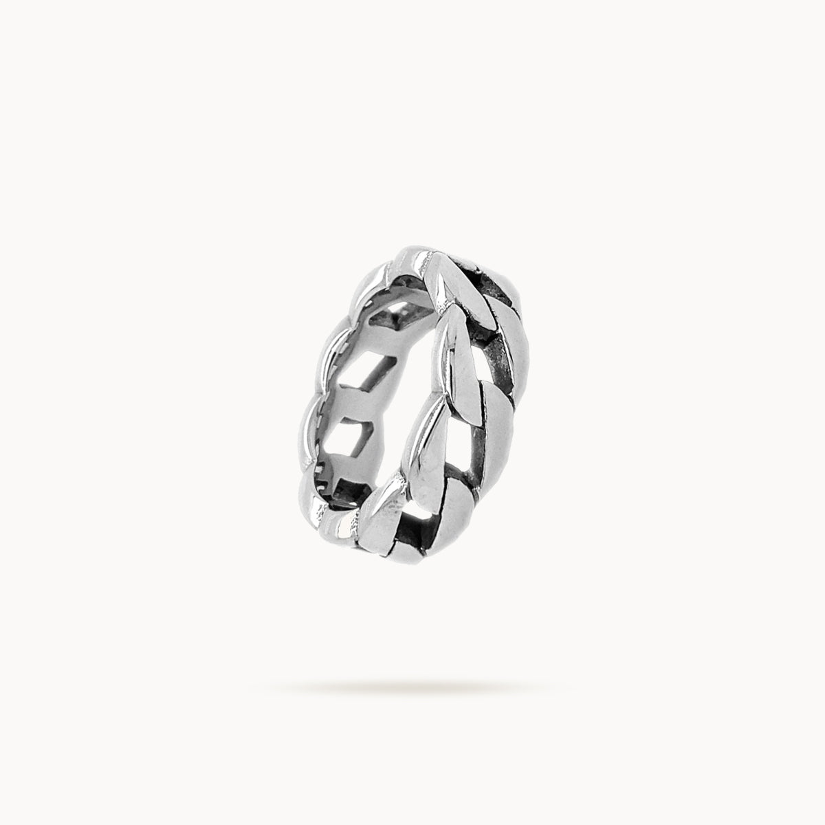 A graceful and contemporary piece, our cuban chain ring is beautifully crafted and exudes confidence. With the chain structure creating modern look, this courage ring will add boldness to your ring collection