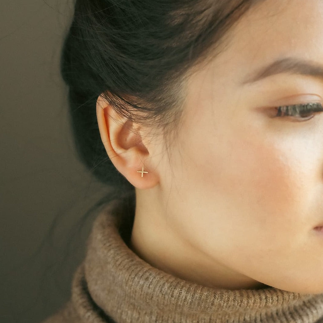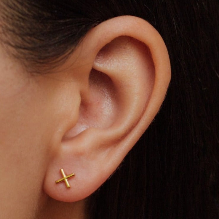 Inspired by the iconic X and Os, these cross stud earrings two fine lines intersecting. The cross studs are made of 925 Sterling Silver and coated with 18K gold. Crafted for everyday wear, these minimal yet classic cross earrings will match any look. Lightweight and versatile, you can put them in your ears and forget about them. Until someone compliments you, of course.