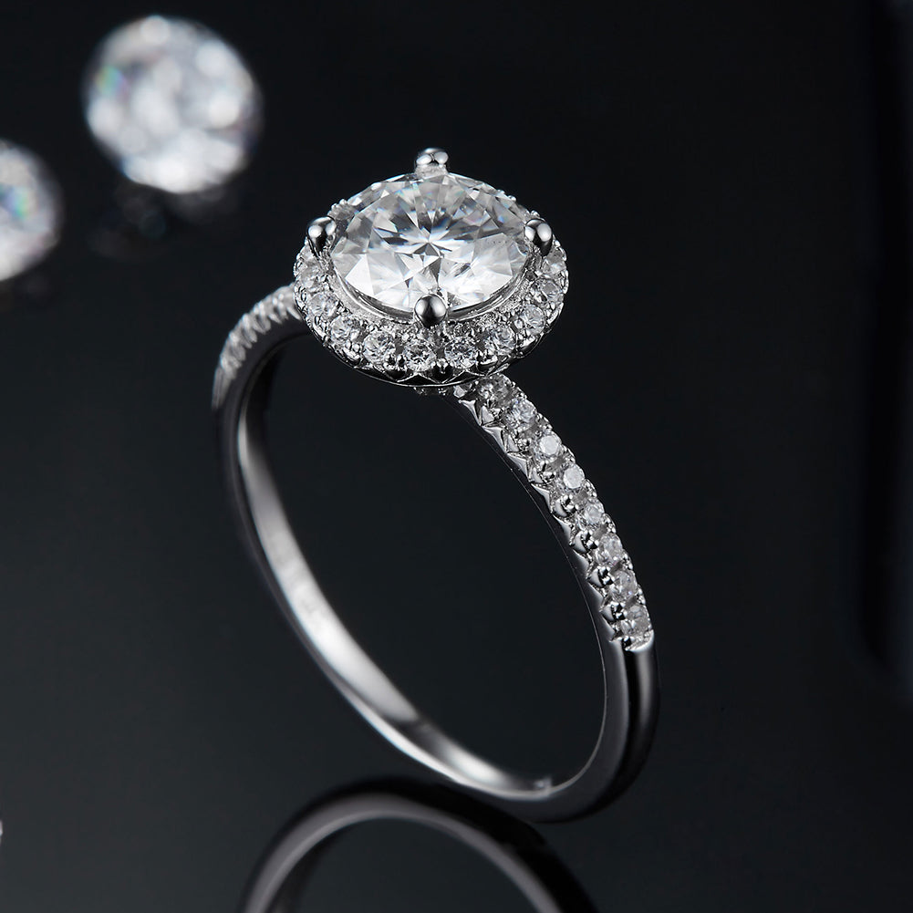 Components: White Gold on 925 Sterling Silver, Moissanite Gems, 5A CZ gems