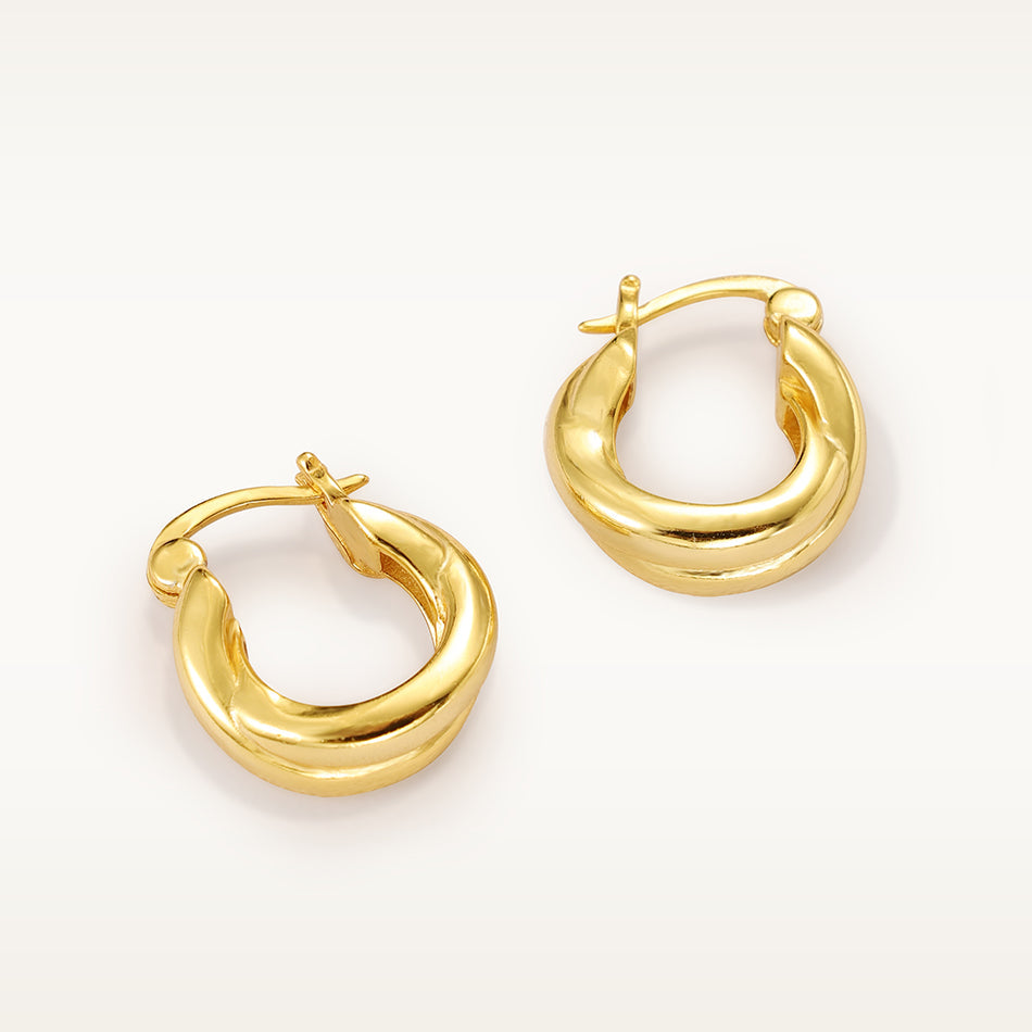 These gold twisted bold hoops are your new hoop staples. Solid in both structure and design, these 925 Sterling Silver bold gold huggie hoop earrings will elevate any look and add shine to your everyday. Pair them with our Solid Gold hoops for a stack to stand the test of time.