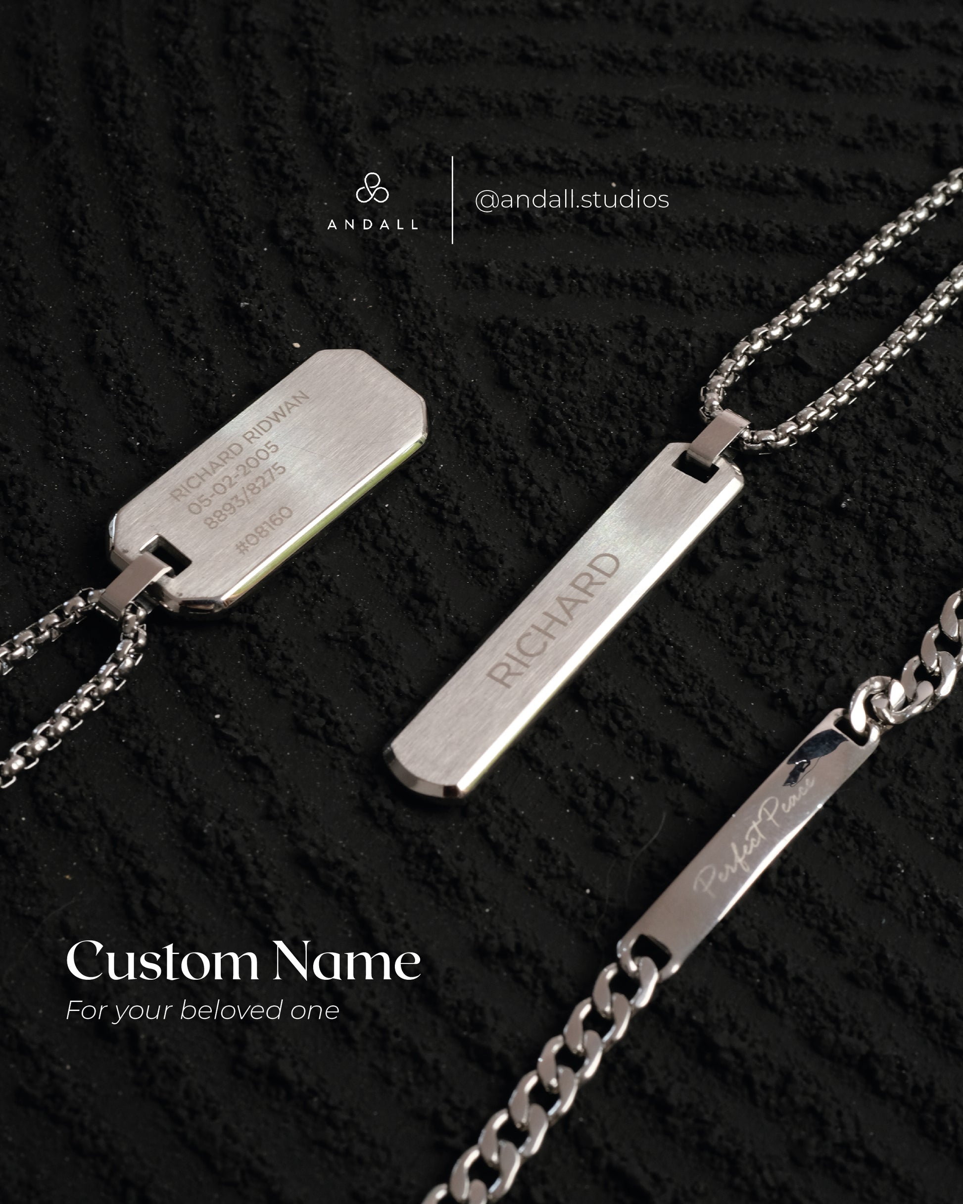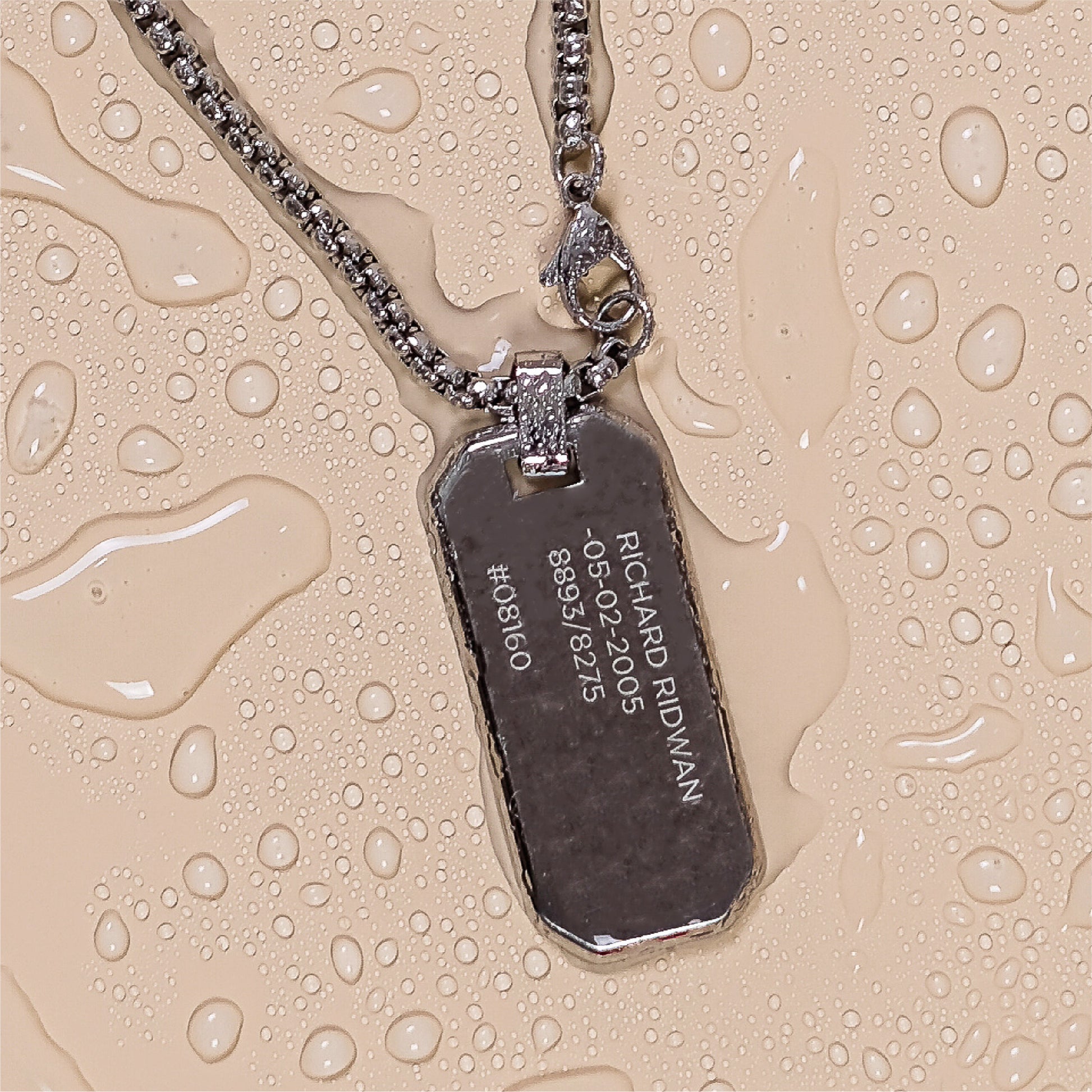 Expressive, contemporary, and all-around just right for everyday wear, this dog tag necklace is how you bring your look to the next level. Handcrafted in stainless steel with a 22-inch cable chain, this bag tag necklace is an essential staple piece. Pair this sophisticated design with any bracelet or necklace for a sophisticated. This tag necklace is meant to outlive trends and seasons.