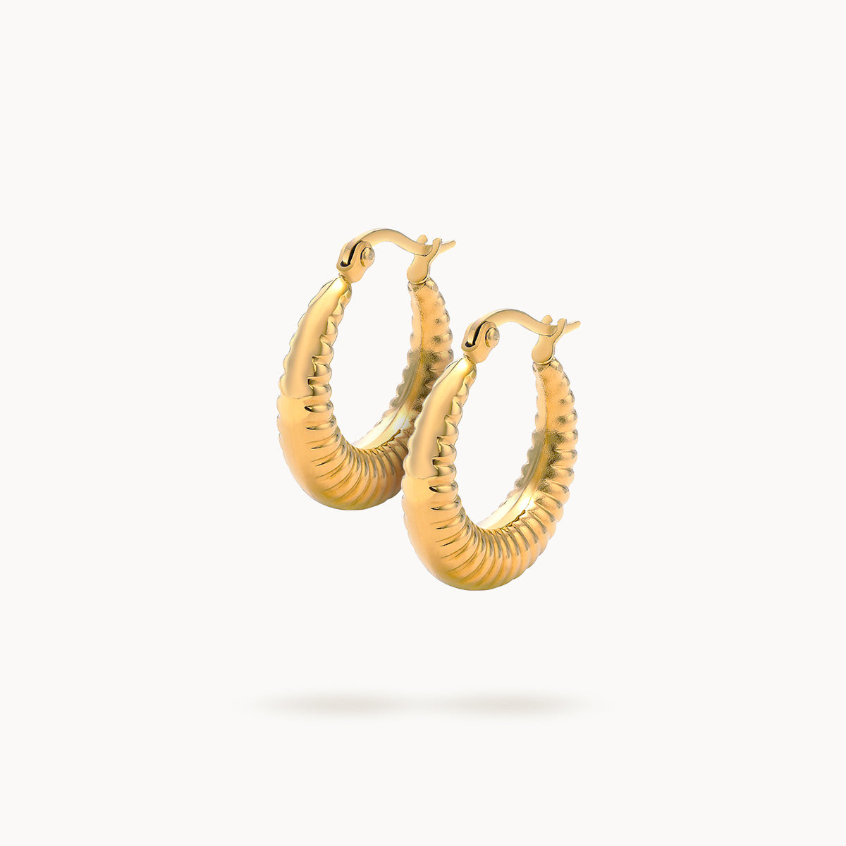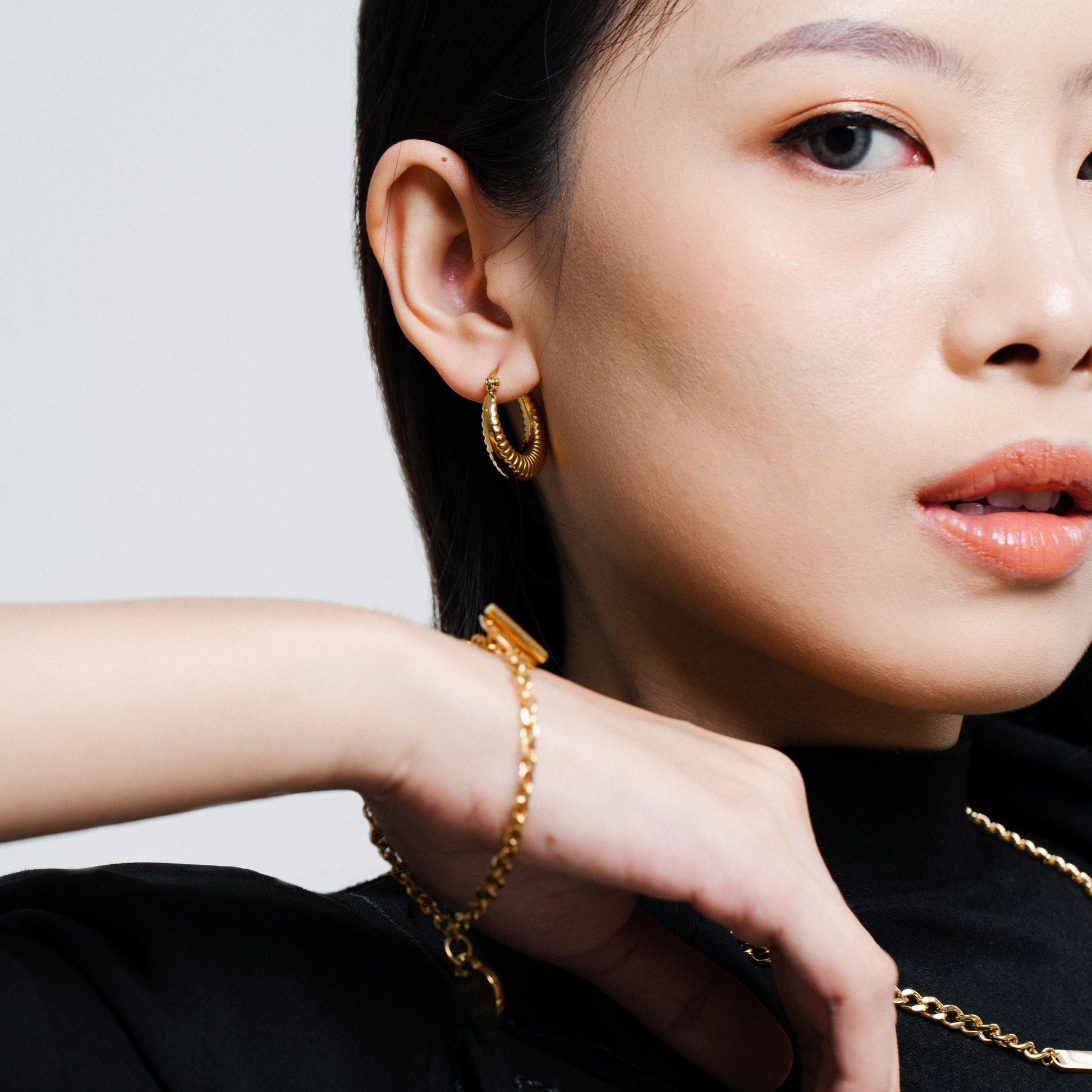 These medium quilted hoops dipped in 18K gold are simple to wear but never boring. These chunky earrings feature a timeless quilted pattern that will elevate your style to new heights. Wear these medium quilted hoops with a sleek updo or a messy bun to complete a modern-day look.