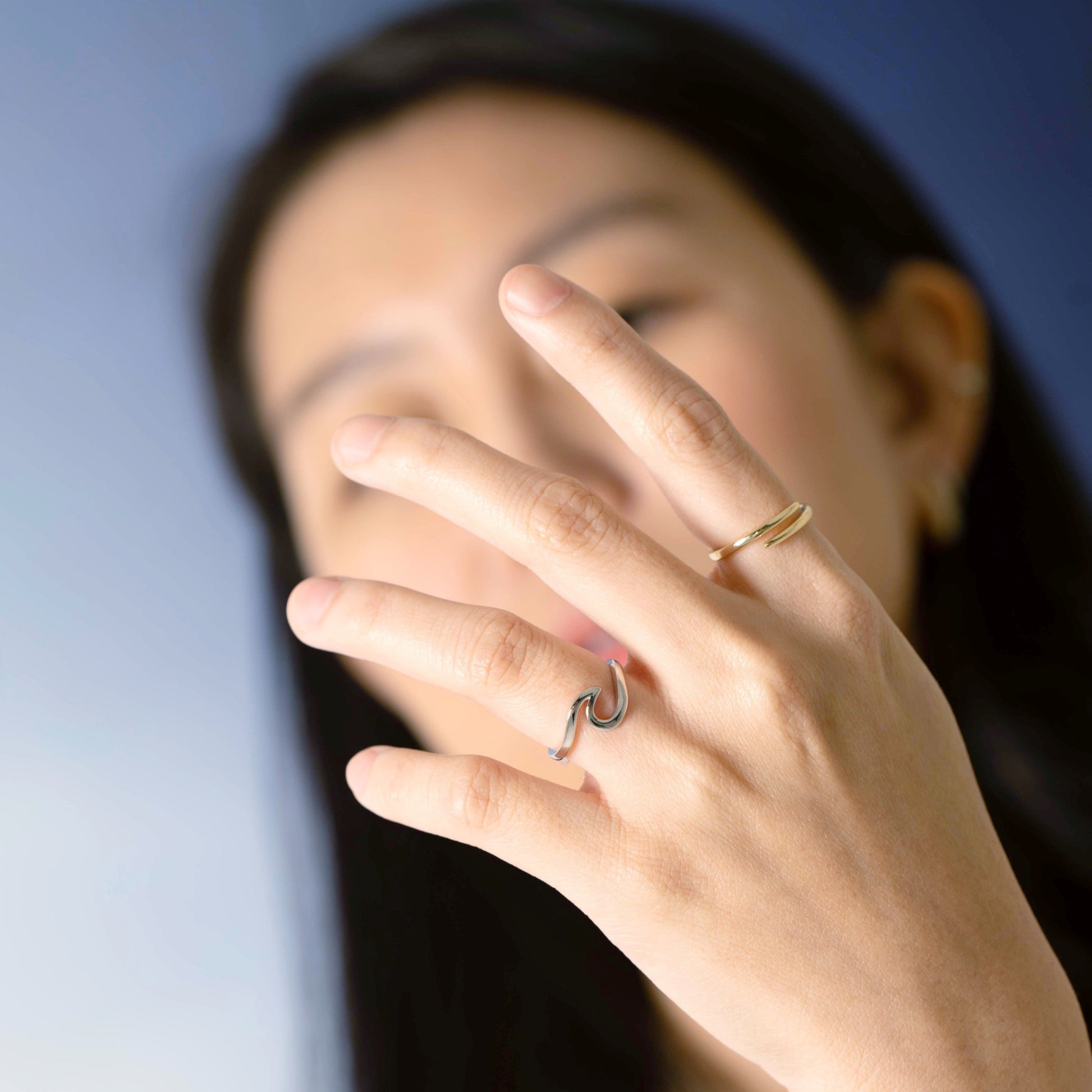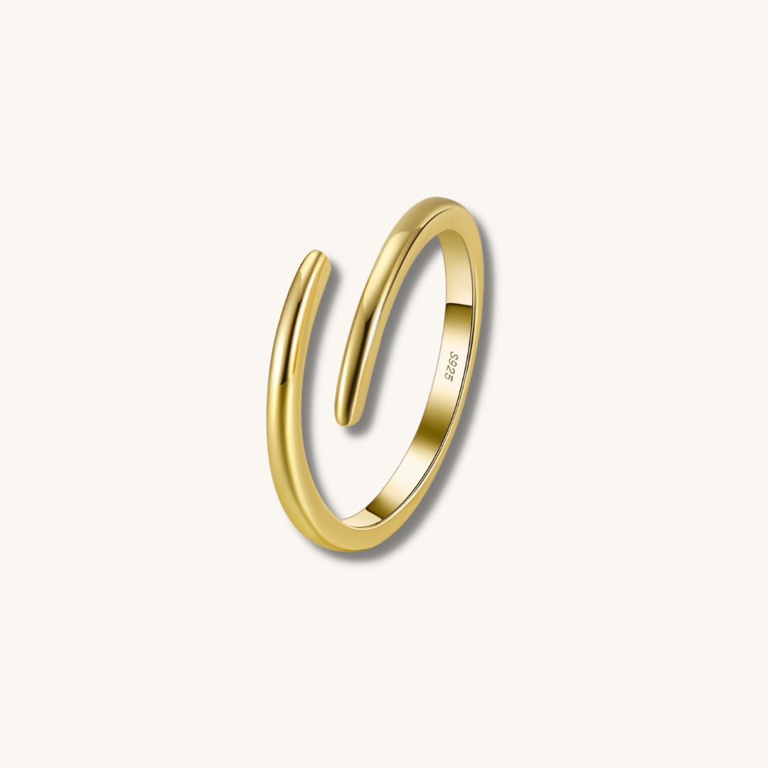 Delicate and understated, this open gold ring is crafted of 925 Sterling Silver with a 14K gold coat. Meant to be layered and worn every single day, this open ring features two White Topaz gemstones. Match it with our Paisley ring for a minimalist and dainty ring stack.