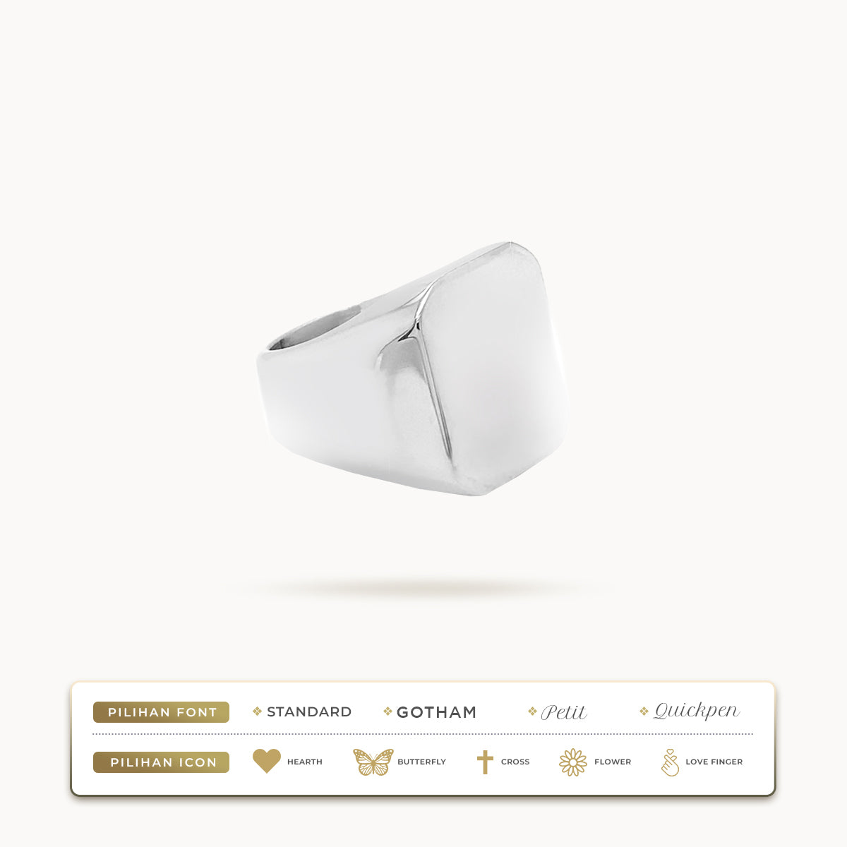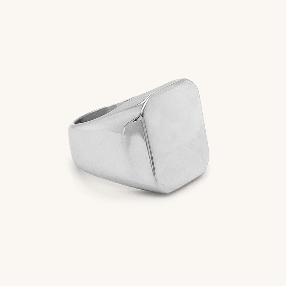 Make your statement with this Square Signet Ring. Polished in E coating, this square signet ring is set apart from the other rings. Used as a powerful tool, slip it one onto your finger or ring finger and you’re good to go. For an additional touch, combine your signet ring with other rings, bracelets cufflinks or watches. This contemporary yet simple signet ring will match any metal and style.