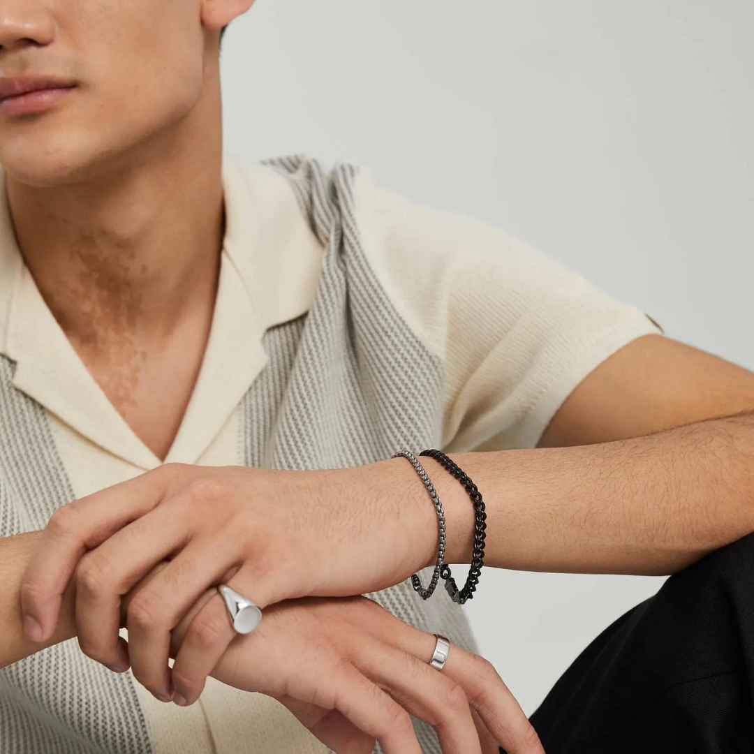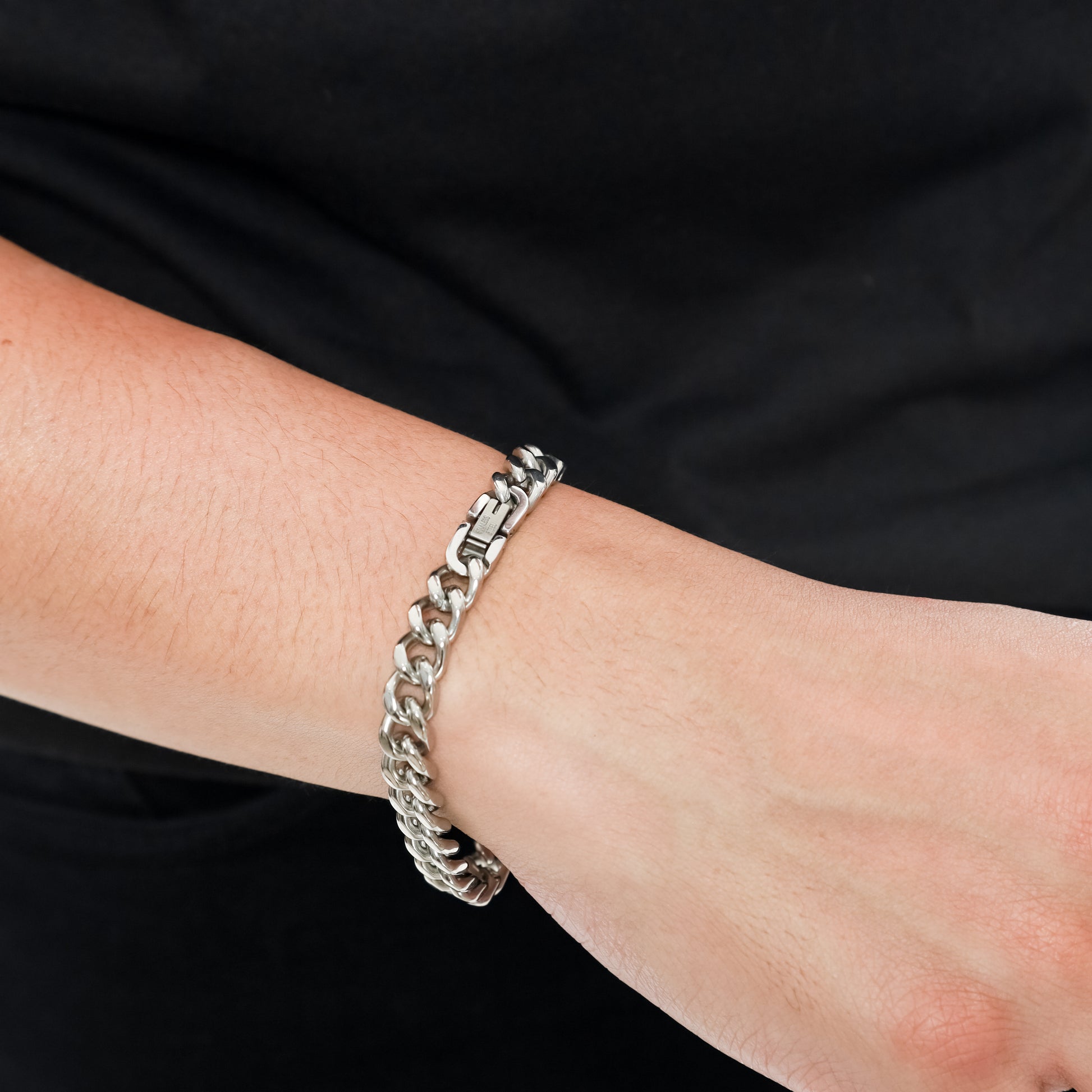 This classic and chunky curb chain bracelet can be used as aĀ single statement piece or combined with other bracelets. Ā Beautifully crafted in durable, damage-resistant stainless steel, this curb chainĀ bracelet is ideal to worn alone or stacked with chain bracelets.