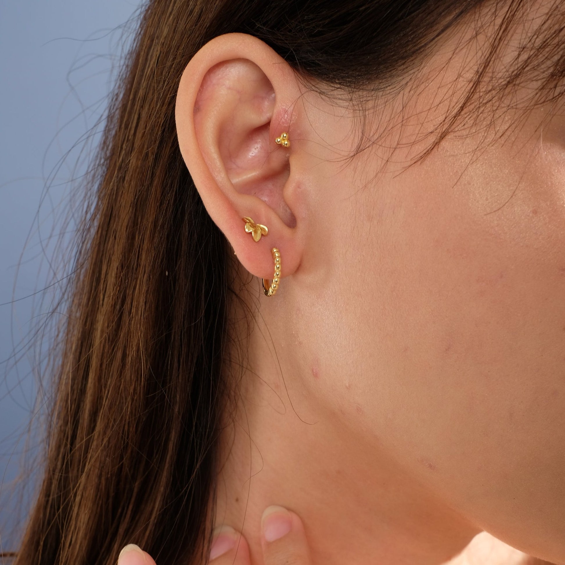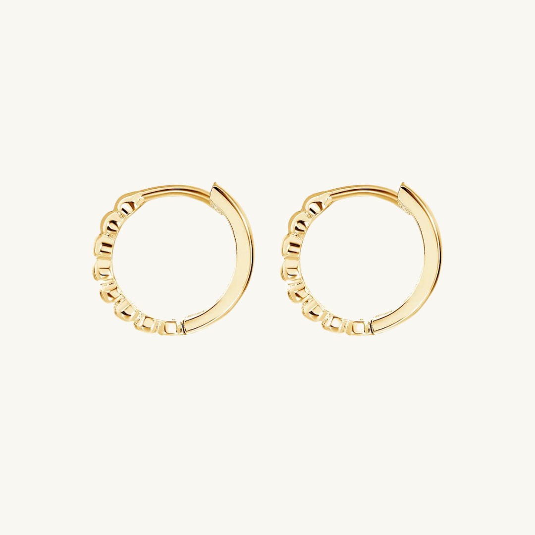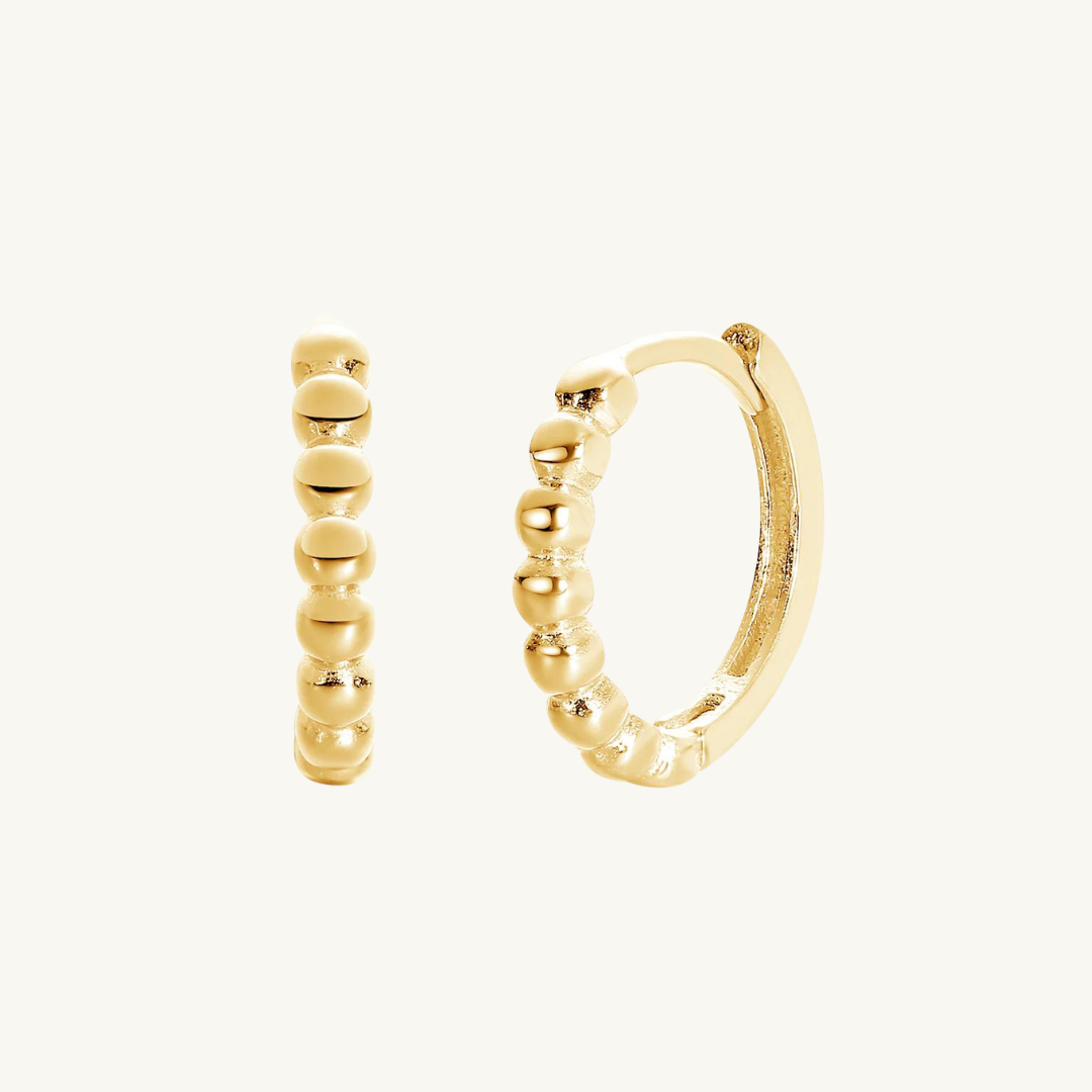 This Tessa beaded earrings is the perfect earring for those wanting to add a chic touch to your everyday look. Crafted in 925 Sterling Silver and coated with 18K gold, these earrings are perfect. Delicate and lightweight, these huggies will add some chic texture to your ear stack.