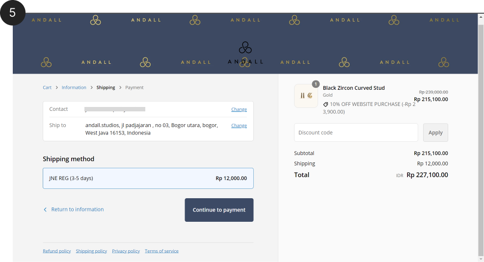 Choose your desired payment and shipping method. On the SHIPPING METHOD section, you can choose either express or regular shipping.